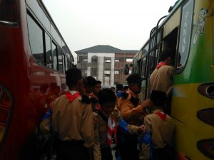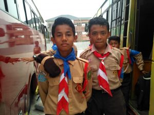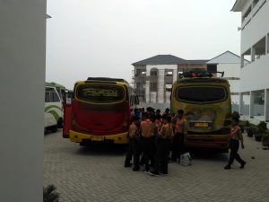 Didampingi sembilan guru pendamping, peserta bertolak dari Sekolah Islam Abdurrab Pekanbaru diangkut tiga bus menyasar lokasi acara selama tiga jam perjalanan.